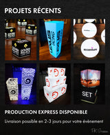 Avec une autonomie de plus de 8 heures, nos lampes aux couleurs de votre marque resteront allumées pendant toute la durée de votre événement.