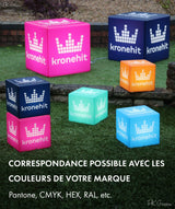 Bon nombre de nos clients utilisent nos articles aux couleurs de leur marque pour des salons, des congrès et des expositions. La plupart de nos articles grand format sont suffisamment solides pour s'y asseoir.