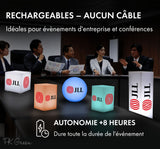 Nos lampes et nos centres de table sont conçus pour les événements d'entreprise. Aucun assemblage n'est requis. Ils sont télécommandés et offrent 16 options de couleurs.