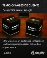 Note : L'option "Ajouter au Panier" correspond à la plus petite taille, pour laquelle un seul côté est personnalisé avec un simple logo en texte noir. Envoyez votre logo sur custom@pkgreen.com. Nous vous recommandons de demander d'abord une maquette et un devis gratuit.
